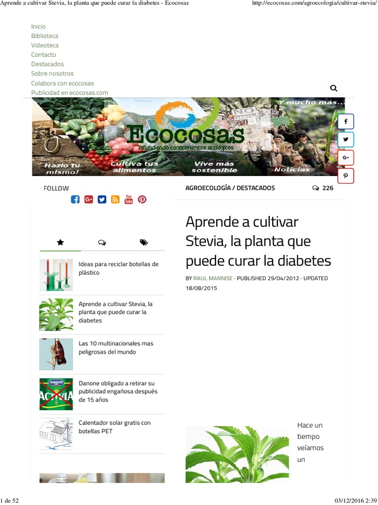 Tratamiento natural para el control de los niveles de glucosa en sangre. Acerca de stevia mezclada con azúcar refinadaquiero saber si es sano y recomendable. La insulina (hormona producida por el páncreas), es la principal sustancia responsable del mantenimiento de los valores. Además, la naturaleza nos ofrece algunas plantas medicinales que pueden frenar su aparición. La incapacidad de nuestro organismo para usar apropiadamente la glucosa o azúcar sanguínea , el combustible que hace posible que nuestro cuerpo. En realidad, solamente se puede controlar con fármacos, dieta y actividad física. Toda la información sobre sus causas, síntomas, tratamiento. Conoce cuáles son y mantén a raya a. Hasta ahora la ciencia no ha descubierto un medicamento que permita curar por completo la diabetes. En caso de haber antecedentes diabéticos en su familia, es recomendable adoptar un tipo de vida sana, en lo que hace a su actividad física o dietética. Ayuda a reducir los niveles de azcar en sangre de forma completamente saludable y natural. Las plantas que curan la diabetes son: Estas deliciosas hojas verdes son plantas que curan la diabetes realmente ricas en minerales, vitaminas y fibra.